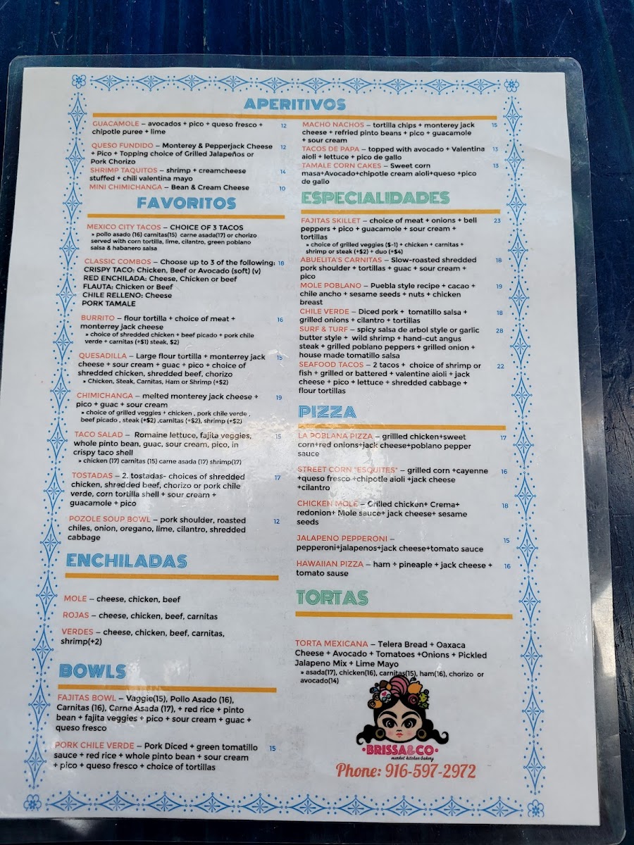 Brissa & Co., nestled in the charming area of Folsom, CA, offers a vibrant Mexican culinary experience that transports you straight to the heart of Mexico. The menu is a colorful tapestry woven with traditional flavors and modern flair. From the mouthwatering Mole Poblano, featuring cacao and sesame seeds, to the delectable Seafood Tacos filled with grilled shrimp and valentine aioli, every dish is crafted with care. For those seeking spice, the Steak & Shrimp Diabla is a must-try, bursting with flavor from the arbol salsa.